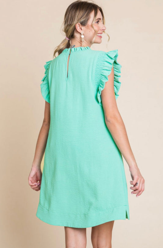 Midi Frilled Neck with Back Keyhole Ruffled Shoulder Tiered Layer Dress