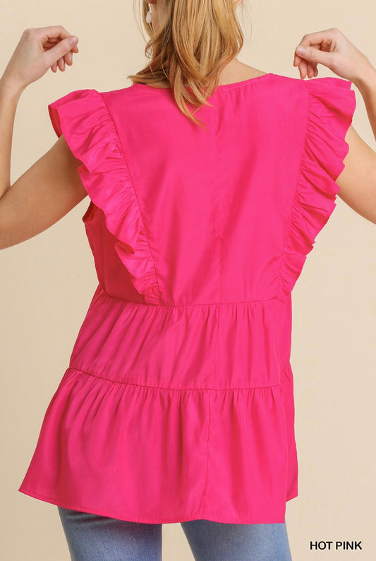 V Neck Ruffle Sleeve Flowy Loose Shirt