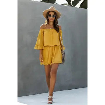 Chiffon Off Shoulder Flare Sleeves Loos Fit Romper