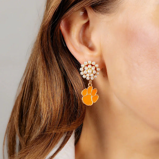 Clemson Tigers Pearl Cluster Enamel Drop Earrings in orange